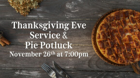 Join us on Wednesday, November 26th at 7:00pm for our annual Thanksgiving Eve Service and Pie Potluck. We will gather to sing and give thanks to God, and then retire to the...